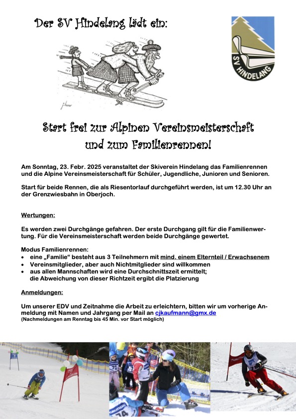 nächste Woche am 23.2.2025 findet der Vereiner und das Familienrennen statt. Start ca. 12.30 Uhr